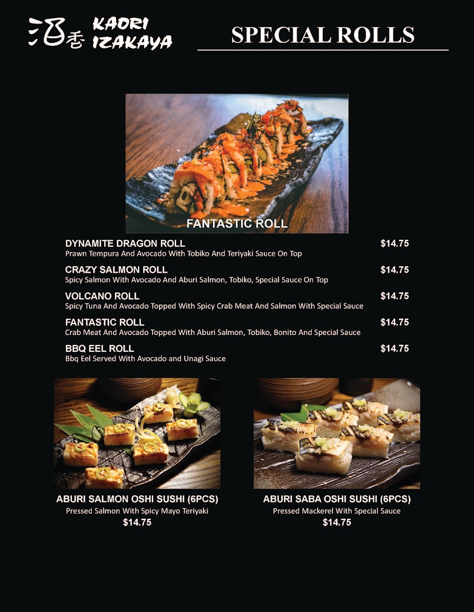 Crab meat and avocado topped with aburi salmon, tobiko, and special sauce.